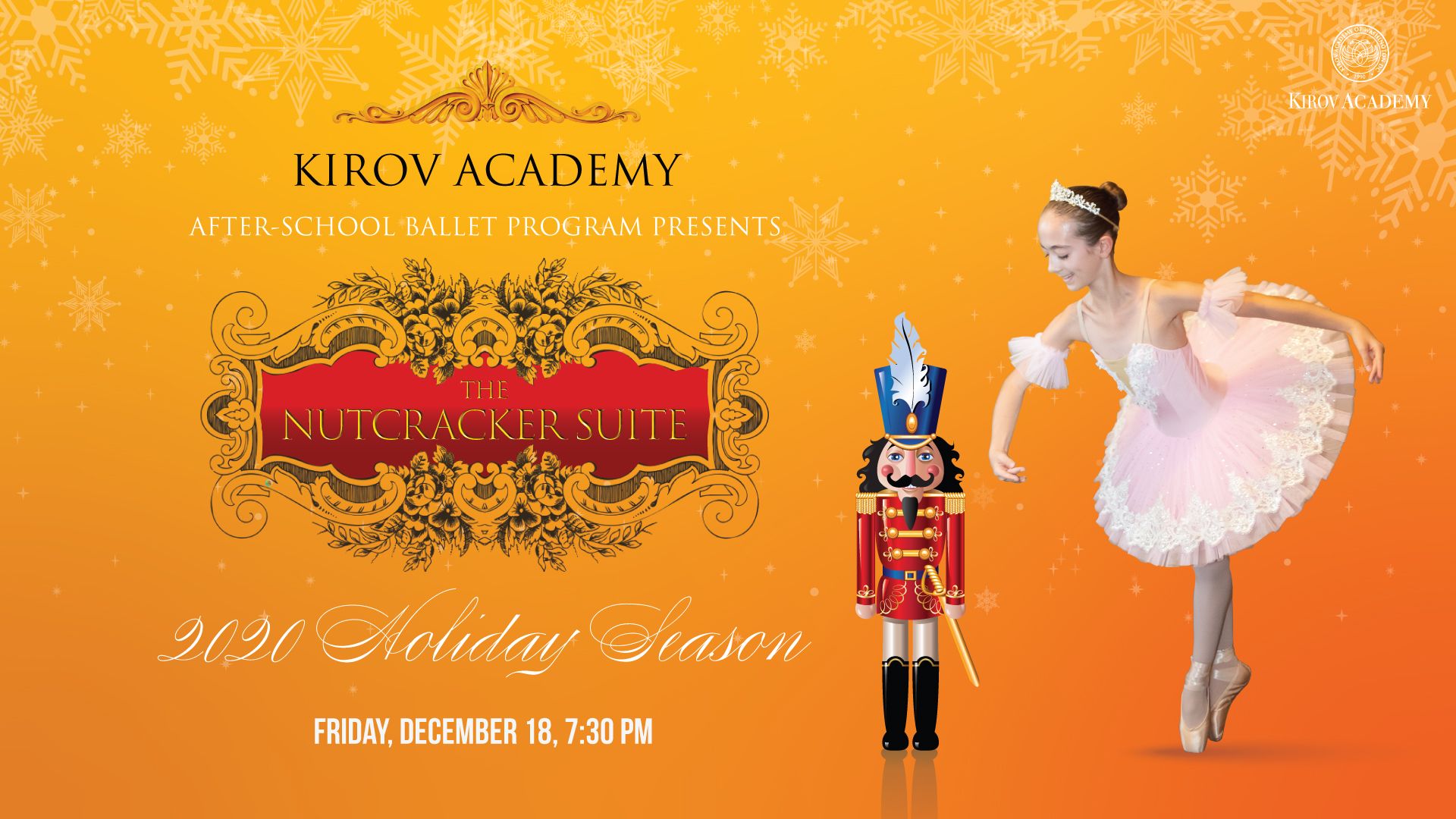 Celebrate your holiday season with Kirov Academy’s ASP Ballet students in a virtual performance of The Nutcracker Suite.