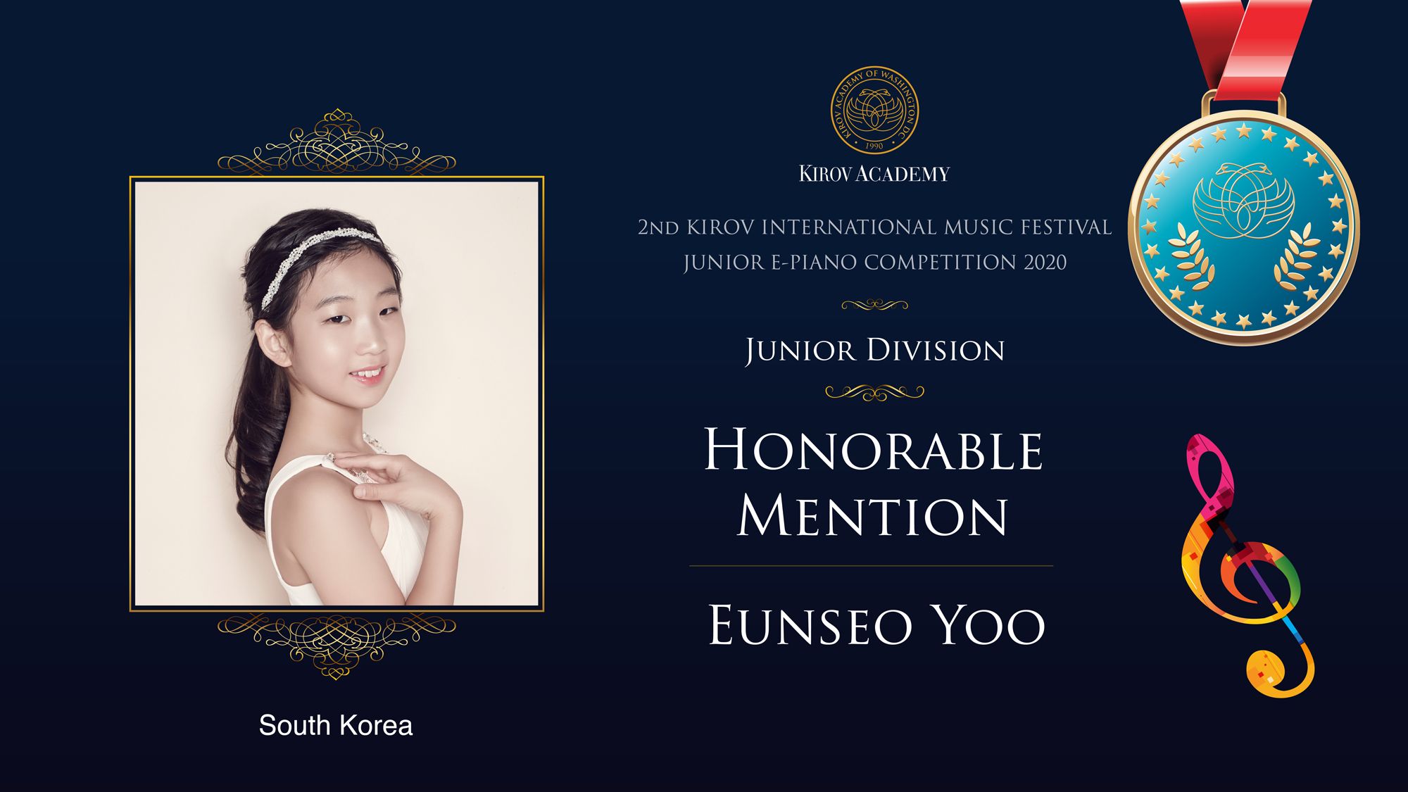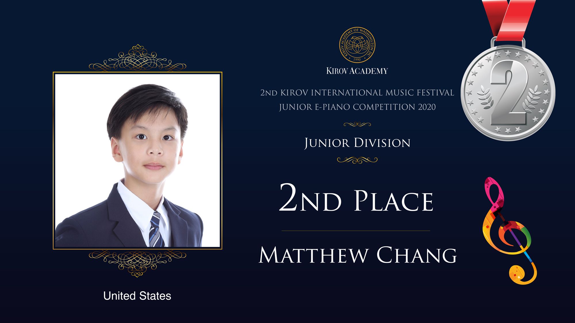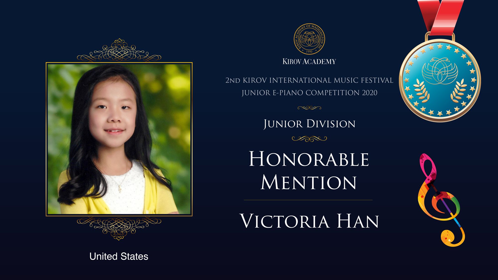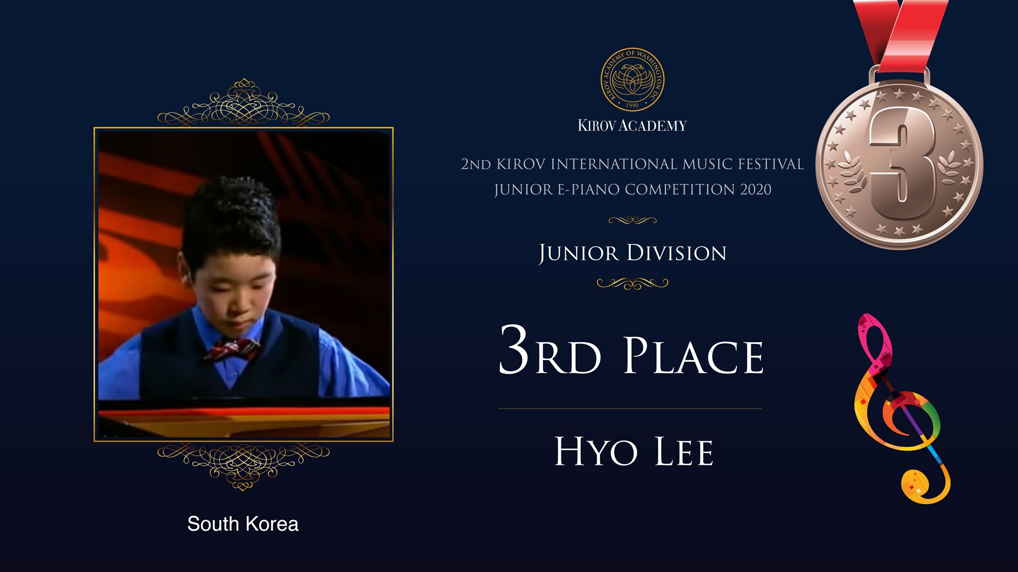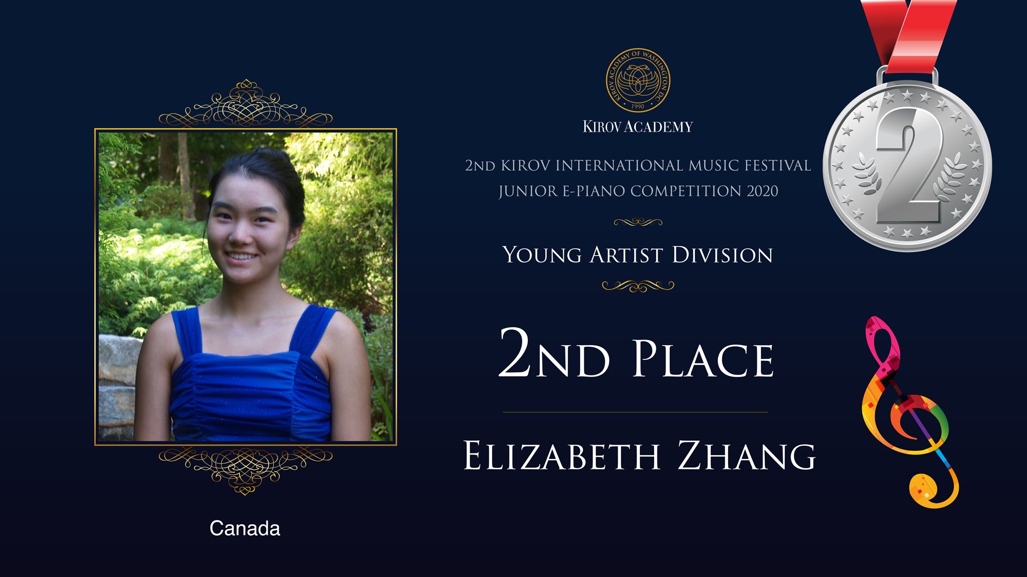 First, Second, and Third Prize winners will perform at the Kennedy Center in Washington D.C. in 2021 and are invited as scholarship participants to the 2021 Kirov International Music Festival. Laureates will also participate in masterclasses with internationally renowned artists.